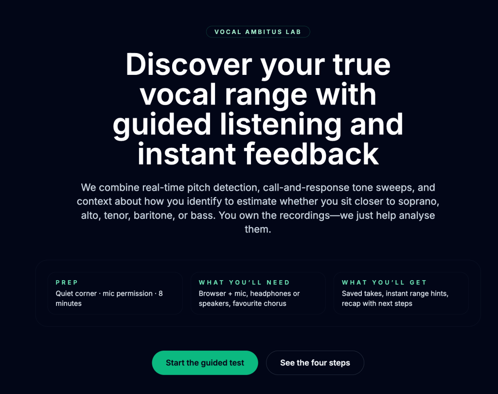 What it does: Lets you talk, sing, and record a few vocal ranges, then calculates your ambitus and shows where your voice sits.